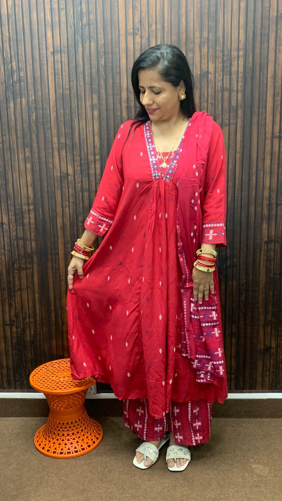Women’s Pink Printed Kurta Set with Embroidered Yoke & Dupatta