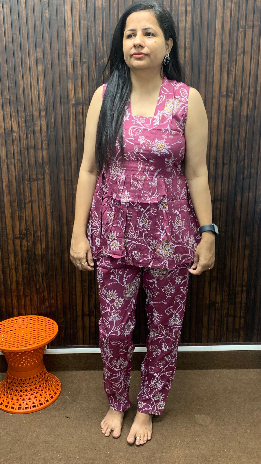 Women’s Printed Sleeveless Top and Pant Set – Maroon Floral Co-ord in Cotton