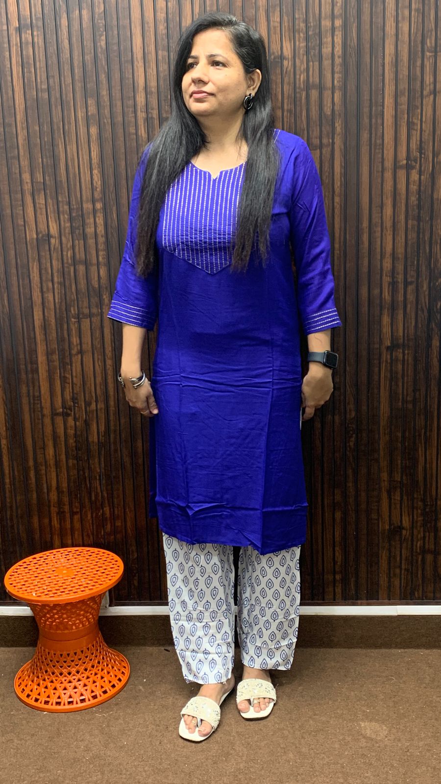 ✅ Color: Rich royal blue kurta with white printed pants